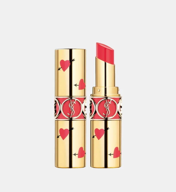 L’écrin du plus culte des rouges à lèvres Yves Saint Laurent Beauté se parsème ici de jolis cœurs tendres transpercés de la flèche de Cupidon.