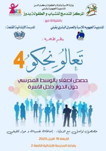 L’équipe « Venez on parle. » s’est déplacée le mercredi 19 avril 2023 à l’école primaire El Kalaa 2, où la quatrième session de cette manifestation a été réalisée avec la participation d’un grand nombre d’enfants sur le thème du dialogue familial.