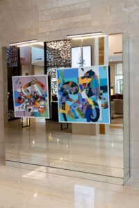 Sous la supervision artistique de Michela Margherita Sarti, commissaire d’exposition, le Mövenpick Hôtel du Lac Tunis a fait appel au talent et au savoir-faire de ces artistes pour une sélection artistique finale ciblée et qualitative.